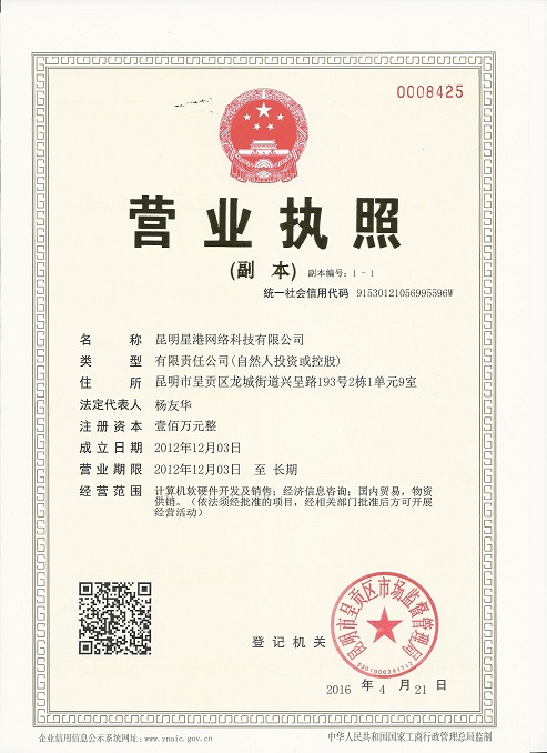 昆明星港网络科技有限公司注册于2012年,公司致力于向社会提供优质网络应用服务。